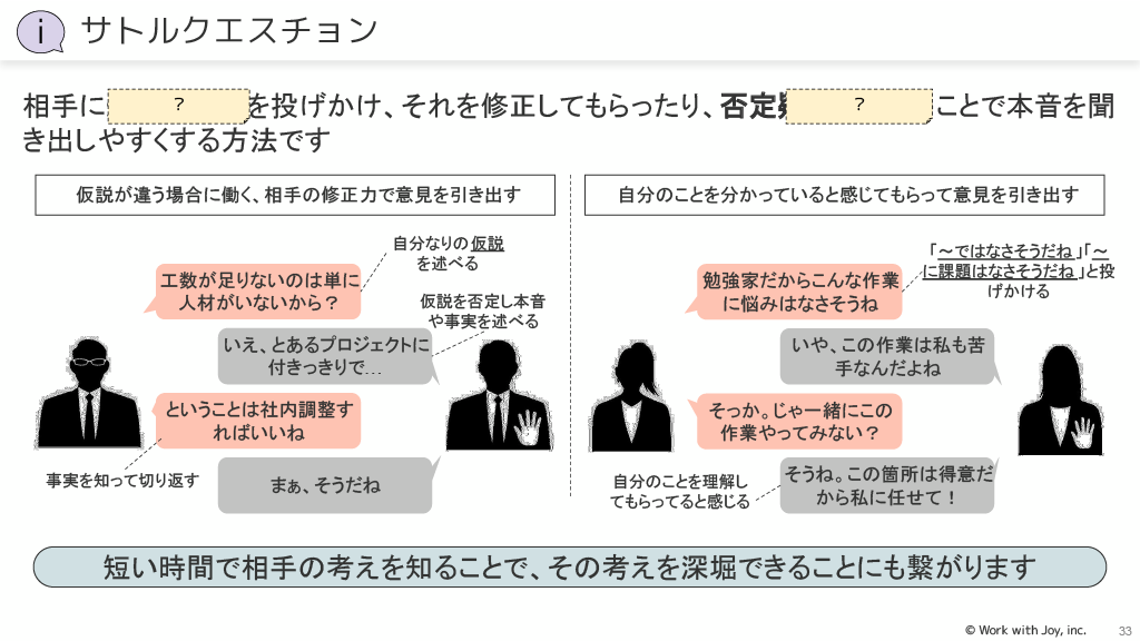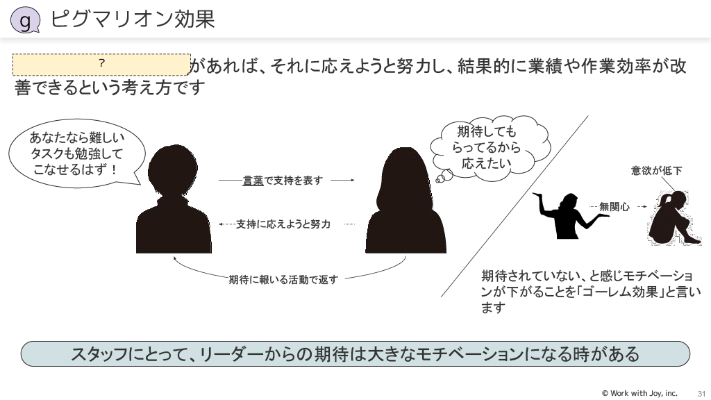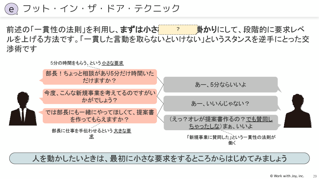 テンションリダクション効果:緊張や不安が減少した直後に気が緩む状態になることを利用し、そのタイミングで成長を促進するような依頼や助言をします。