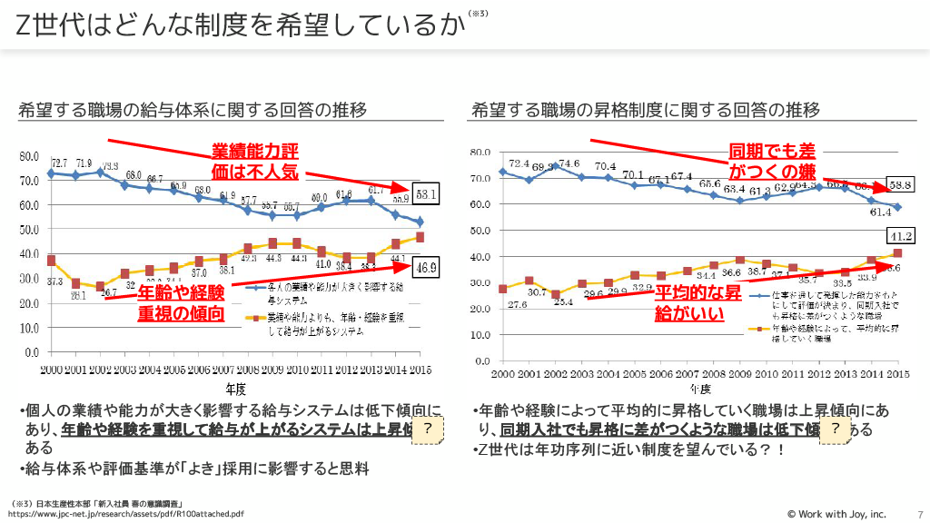 希望する昇格制度は、「年齢や経験によって平均的に昇格していく職場」が上昇傾向にあります。